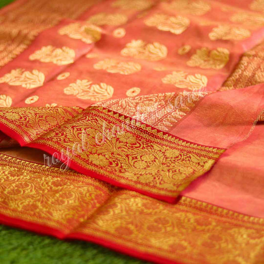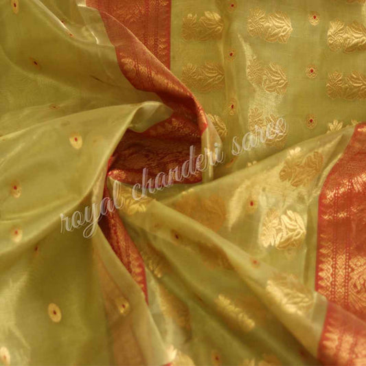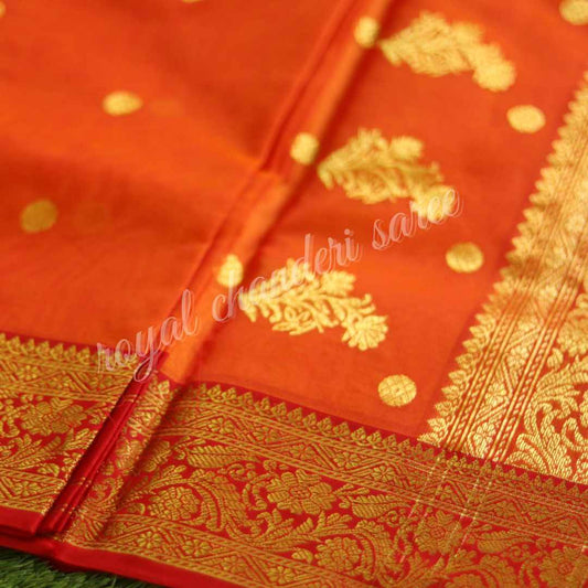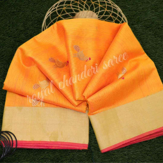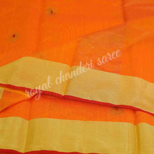 Orange Tissue Chanderi Handloom Pure Silk Saree