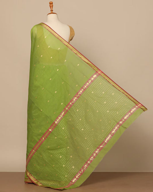 Light Green Chanderi Silk Cotton Eknaliya Saree